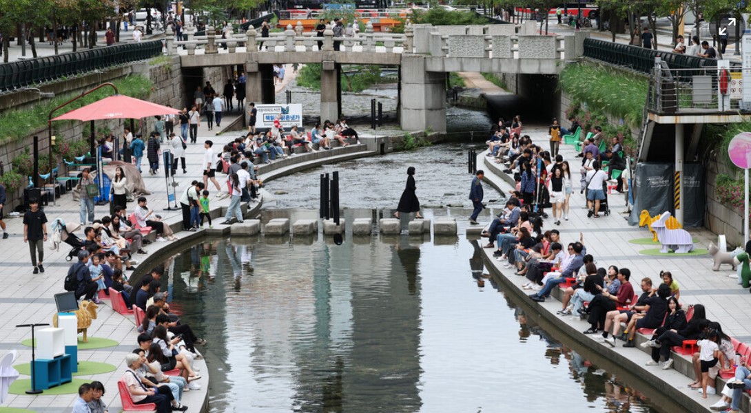 청계천의 자연과 물소리를 배경 삼아 책을 읽는 특별한 야외도서관